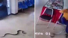 สติดีมาก! ชายเสื้อส้มมาโรงพัก จู่ๆ "งูใหญ่" เลื้อยเงียบพุ่งฉก ดึงสติกระหน่ำบาทารัวๆ