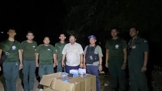 รองผู้ว่าราชการเขมร นำหน้ากากที่อ้างว่ากันแก๊สพิษ ไปมอบให้กับกองกำลังกัมพูชาและชาวบ้านเขมร