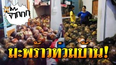 น้ำท่วมสวนบางสะพาน หอบเอามะพร้าวเข้าบ้านเต็มพื้นที่ ราวกับแดนสนธยา