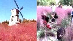 "นักท่องเที่ยวจีน" บุกถ่ายรูปทุ่งหญ้าสีชมพู ปลูกนาน 3 ปี แต่พังหายหมดใน 3 วัน