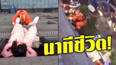 นาทีระทึก "กู้ภัยจีน" ใช้ไหวพริบ โหนตัวช่วยชีวิตหญิงคิดฆ่าตัวตาย (คลิป)