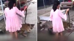 ฮือฮาล่ะสิ!! เด็กหญิงวัย 9 ขวบ จูงลูกเสือเดินเล่นยามเช้า ชีวิตมันชิลล์จริงๆ