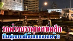 รถพ่วงบรรทุกเสาเหล็ก ปีนฟุตบาธ