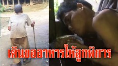 เห็นแล้วสงสารจับใจ ชายชราหลังค่อมสภาพอิดโรยเดินขออาหารให้ลูกพิการช่วยเหลือตัวเองไม่ได้สุดน่าเวทนา