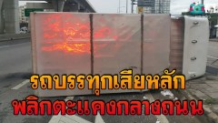 รถบรรทุกเสียหลัก พลิกตะแคงกลางถนน