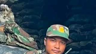ทหารเขมรสวมหมวกพลาสติกโพสต์รูป พร้อมแคปชั่น "จงระวังไว้พวกเสียม ข้าคือแบทแมน