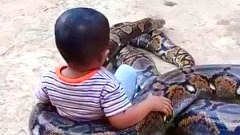 ประมาทเกินไปไหม? พ่อแม่ปล่อยลูกเล่นกับงูหลามตัวยักษ์ แถมถ่ายคลิปโชว์