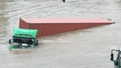 วินาที! รถส่งสินค้าไหลลงแม่น้ำเมย ขณะกำลังยกสินค้าลงจากรถ (ชมคลิป)