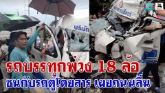 รถบรรทุกพ่วง 18 ล้อ ชนกับรถตู้โดยสาร เผยถนนลื่น !!! 03/09/2561