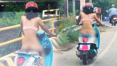 พบสาวเปลือยท่อนล่าง สวมหมวกกันน็อคขี่มอเตอร์ไซค์ร่อนทั่วเมือง
