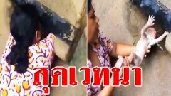 เวทนา! พบทารกถูกทิ้งในท่อระบายน้ำ สายสะดือพันคอ ก่อนหญิงใจบุญช่วยชีวิตไว้ทัน
