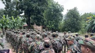 ทหารเขมรรวมกำลังเตรียมเดินทางไปสมทบกับทหารแนวหน้าบริเวณชายแดน ไทย-กัมพูชา