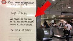 รถไฟฟ้าใต้ดินลอนดอน ติดป้ายให้กำลังใจทีมหมูป่า13ชีวิตถ้ำหลวง
