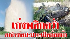 เก๋งตกใจ! รถพลิกคว่ำ ท่อปะปาระเบิดต่อหน้า บนถนนมอเตอร์เวย์
