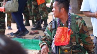 ทหารเขมรล็อตใหม่ เข้ารับเสื้อยันต์เกราะเพชรจากพระเกจิอาจารย์ คาดกำลังจะเดินทางไปสมทบที่ชายแดน