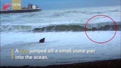 ลุ้นระทึก! สาวเสี่ยงชีวิตฝ่าคลื่นดุ ช่วยสุนัขน้อยตกทะเล