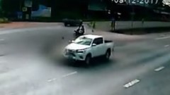 นั้งท้ายกระบะไม่ปลอดภัยนะ!! เบรกแตก! รถบรรทุกห้ามไม่อยู่ พุ่งชนท้ายรถกระบะติดไฟแดงดับสยอง