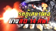 รถตู้ซิ่งเสยท้าย 10 ล้อ ไฟท่วม ย่างสด14 ราย