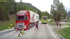 วินาทีหวาดเสียว !! เบรครถบรรทุกขนาดใหญ่ต่างประเทศเขาดี จริงๆ
