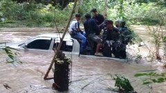 วินาทีเกือบตายหมู่!! ตำรวจทิ้งรถเอาผู้ต้องหาหนีน้ำป่า (ชมคลิป)