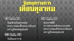 ย้ำอีกครั้ง! วันหยุดราชการเดือนตุลาคม 60