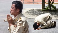 โลกออนไลน์แชร์ภาพสุดซึ้ง หนุ่มเร่ร่อนเนื้อตัวมอมแมม แต่ใจภักดี ขอกราบข้างกำแพง กราบตรงไหนก็ถึงพ่อ พอพอกัน