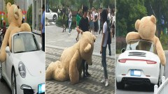 หนุ่มจีนขับรถปอร์เช่สุดหรู พาตุ๊กตาหมีตัวยักษ์ มาให้สาวจีนที่แอบชอบ แต่สาวไม่รับ..จึงพาหมีกลับบ้านแบบเหงาๆ