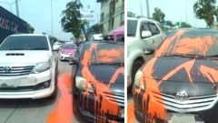 เตือนใจ!! จอดรถขวางทางเข้าออก เลยโดนสาดสีใส่รถยนต์แบบกันแบบนี้เลย