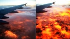 ภาพถ่ายจากหน้าต่างเครื่องบิน ที่"เหมือนบินอยู่บนเพลิงแห่งสงคราม"