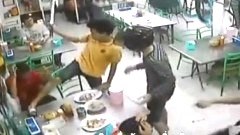 วัยรุ่นนั่งกินข้าวมันไก่ เจอคู่อริคว้าดาบพร้อมพวกรุมกระทืบ..น่ากลัวจริงๆ คนสมัยนี้