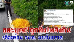 ขยะบุญ!!ถูกทิ้งให้ลิงกิน เดือดร้อน จนท. มาเก็บกวาด