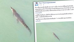 สยองทั้งภูเก็ต!! จระเข้โผล่แหวกว่ายกลางทะเล ตัวยาว 3 เมตร!!