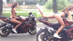 สาวบิกินี่ร้อนเปิดการแสดงเคลื่อนไหวของเธอบนจักรยานยนต์ของเธอ