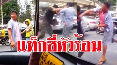 แท็กซี่หัวร้อน เฉี่ยวกันไม่ยอมขอโทษ ลงจากรถซัดกันนัว ผดส.รออยู่ในรถต้องลงไปห้าม..