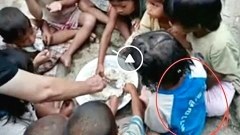 ผู้มีอันจะกินดูไว้!! เด็กนับ 10 คนล้อมวงกินข้าวถาดเดียว นึกสงสารจับใจ