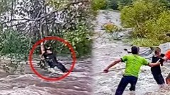 นาทีชีวิต นักท่องเที่ยวเกาะกิ่งไม้ไว้หวิดโดนน้ำป่ากลืน