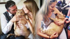 แมวอ้วนได้กลายเป็นส่วนหนึ่งในภาพพรีเวดดิ้งของเจ้าของ