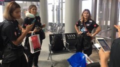 นักตบลูกยางสาวทีมชาติไทยกำลังขึ้นเครื่องการบินไทย ณ สนามบินนาริตะ เพื่อเดินทางกลับสู่ประเทศไทย