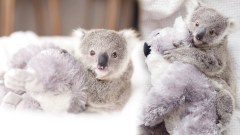 ลูกโคอาลากับตุ๊กตาหมีของมัน