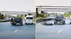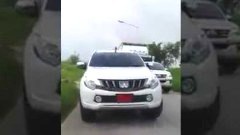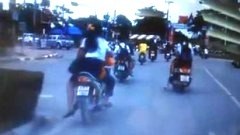 น่าเกลียดมาก กระบะชนมอไซค์จนล้ม ทั้งๆที่มีรถบรรทุกวิ่งตาม แต่เร่งเครื่องหนีเฉยเลย