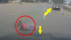 คลิปเตือนสติ นาทีจยย.ตัดหน้ารถเก๋งชนเข้าจังๆ ตามด้วยรถคันขับตามเหยียบซ้ำ