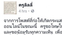 ครูลิลลี่ โพสท์ขอโทษ หลักจากถูกชาวเน็ตรุมจวก กรณีโพสท์ภาพถ่ายคู่รักบนรถไฟฟ้า