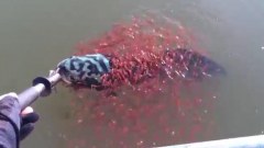"ชะโดแม่ลูกอ่อน ลูกพยามช่วยแม่จากคันเบ็ด"