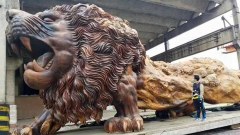 ประติมากรรมสิงโตไม้ที่ใหญ่ที่สุดในโลก สร้างจากต้นไม้ต้นเดียว ในเวลา 3 ปี