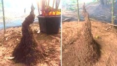 ฮือฮา! ชาวบ้านพบจอมปลวกลักษณะคล้ายพญานาค เชื่อเป็นพ่อปู่ศรีสุทโธ