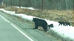 แม่หมีพาลูกๆ ข้ามถนน