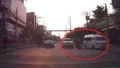 มอเตอร์ไซค์ยกล้อ ชนท้ายรถตู้ ก่อนกระเด็นชนอีกหลายคัน