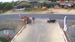 บิ๊กไบค์เสียหลัก !!! ไถลเฉี่ยวชายยืนริมถนน