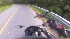 อุบัติเหตุ!! บิ๊กไบค์ พลาด หลุดโค้งกระเด็นไปอีกฝั่ง น่ากลัวมาก!! Big bike accident