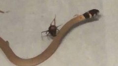 ลุ้นระทึก!! งูพิษสีน้ำตาลติดกับดัก แมงมุมหลังแดง